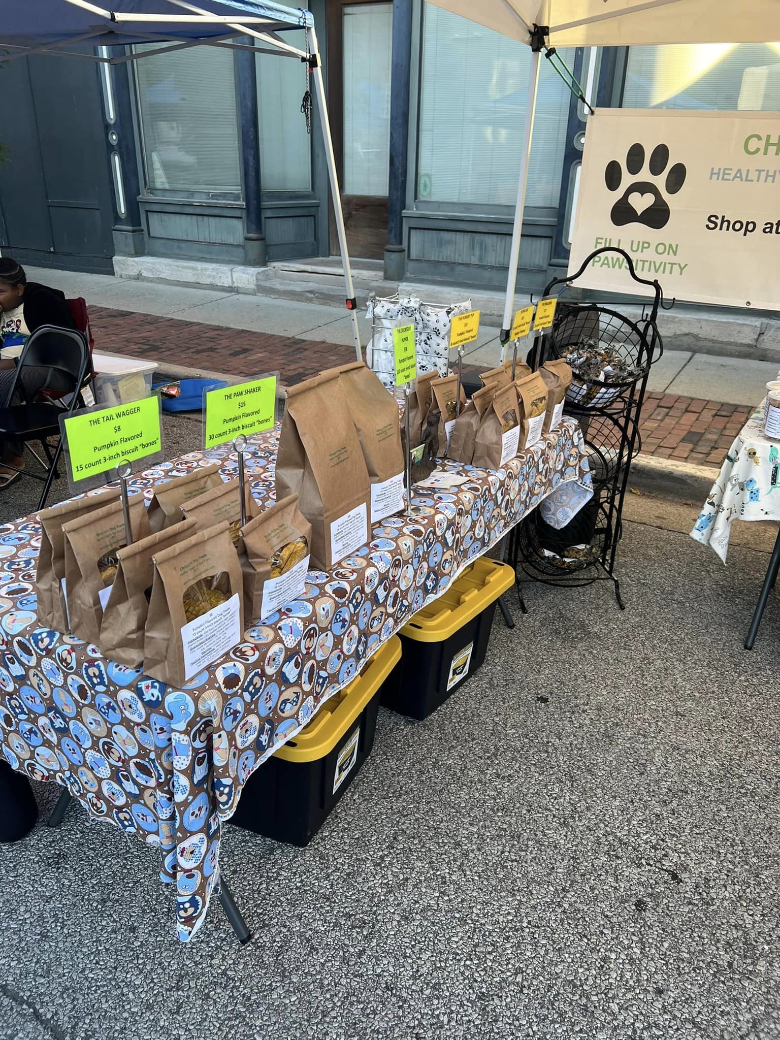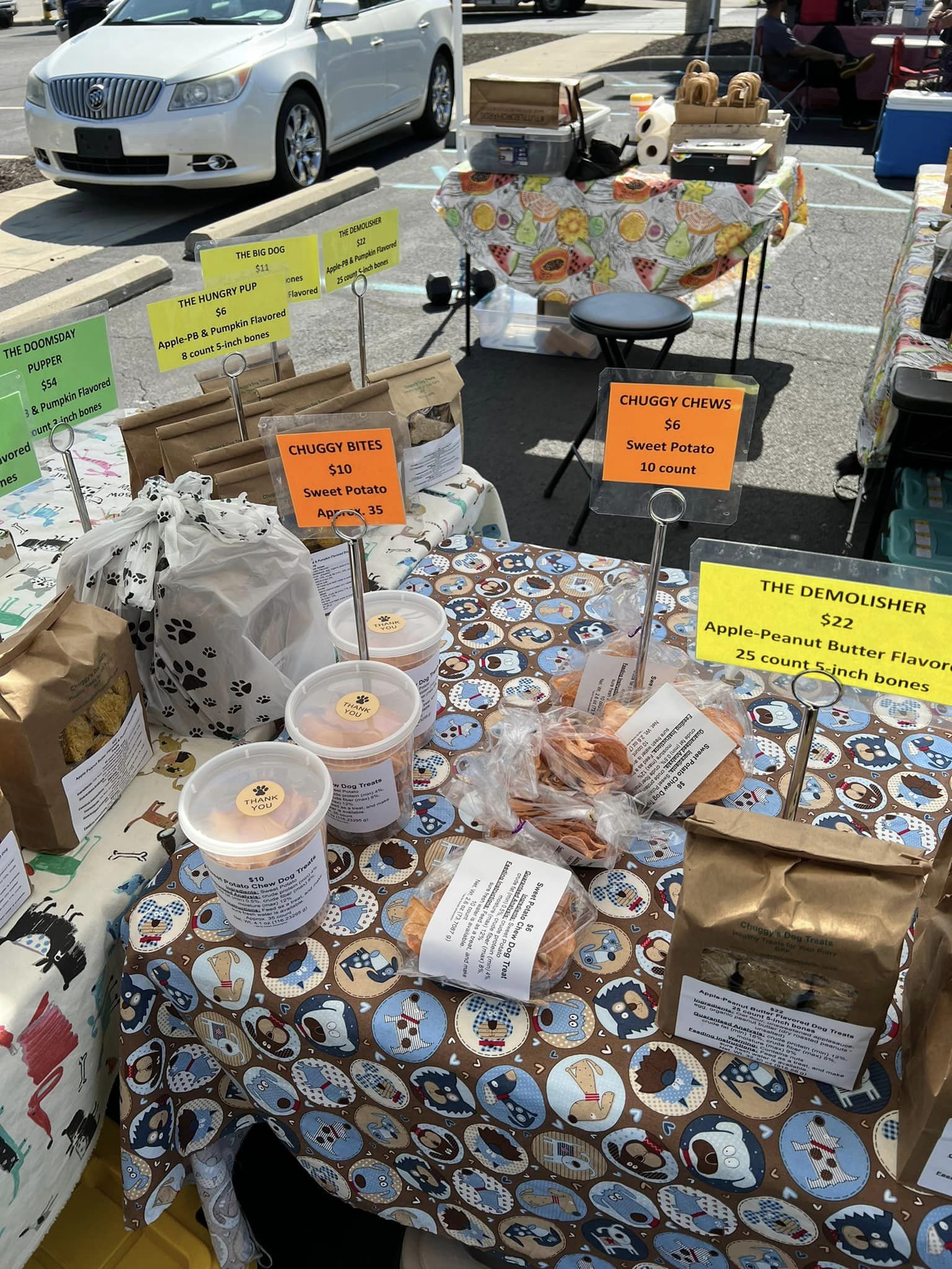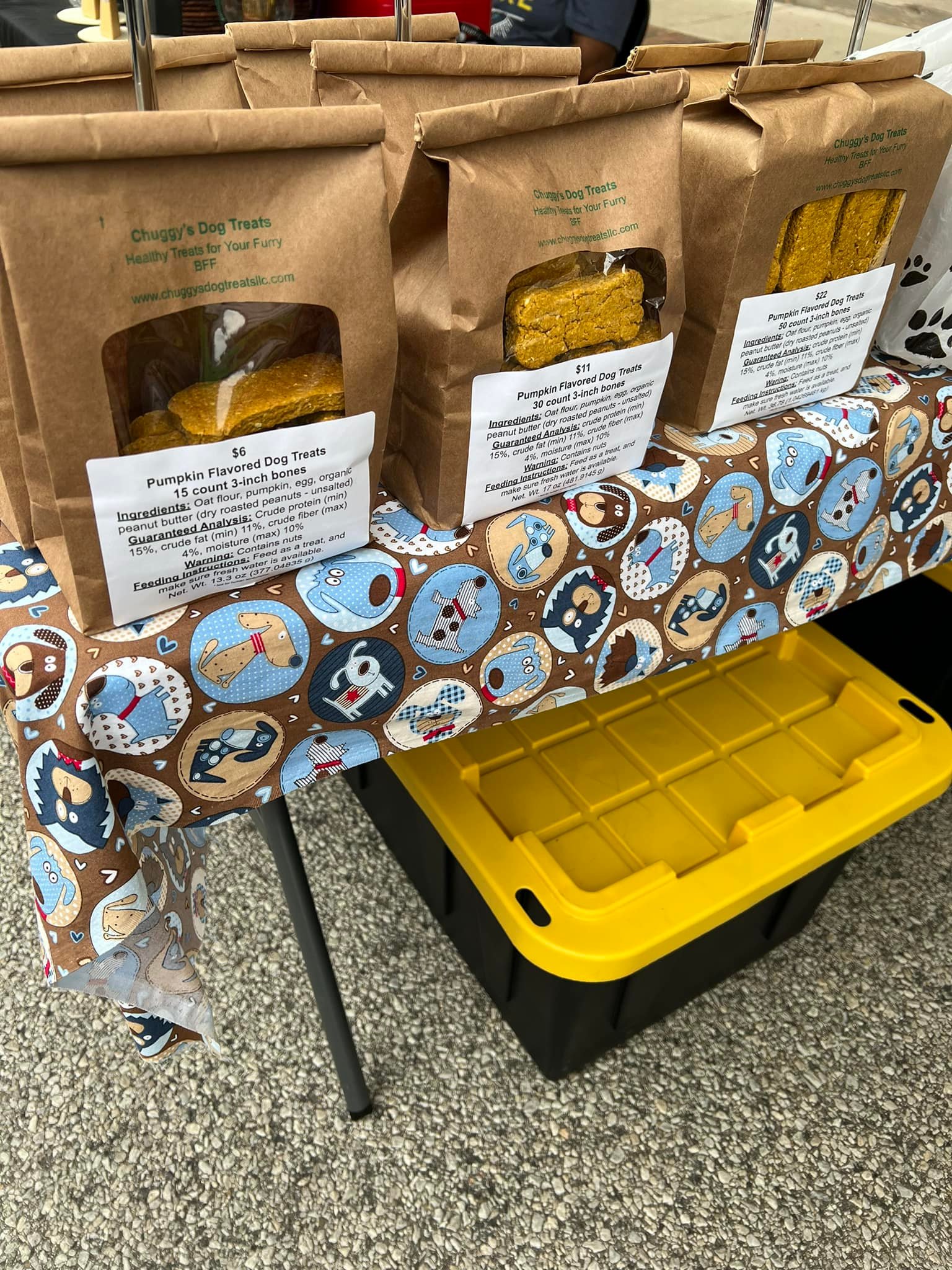 Chuggy’s offers three different types of dog treats. Two in biscuit form: Apple Peanut Butter and Pumpkin. Our biscuit treat comes in three different sizes with different quantities. Also available is our sweet potato chews.
