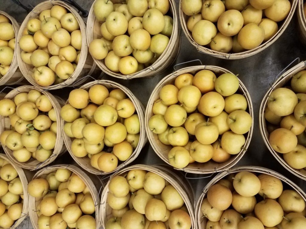 Offering fresh fruit including apples, asian pears, peaches, and chestnuts. Available to purchase at the farm or at the Farmers Market.